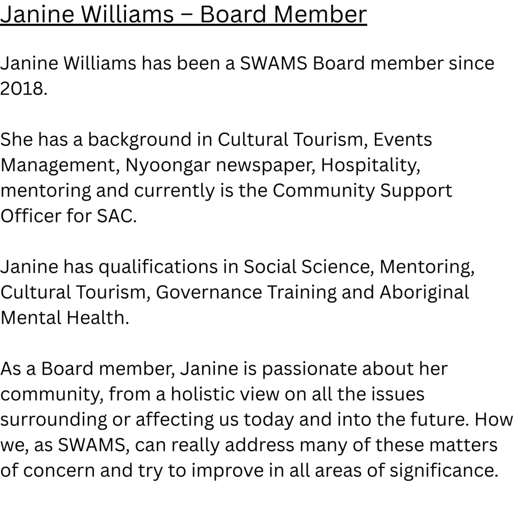 The SWAMS Board (or Governing Committee) consists of a Chairperson and two other members.