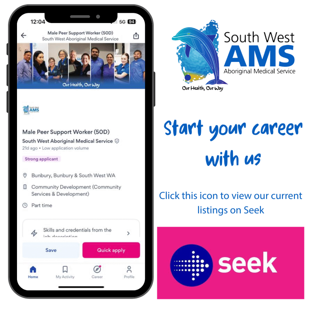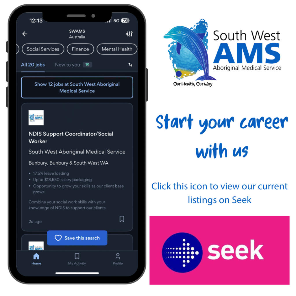 The South West Aboriginal Medical Service (SWAMS) aims to provide rewarding career opportunities in the not-for-profit health care sector. We offer a variety of roles in our administration services, health promotions or clinical services departments, which operate out of two-state-of-the art buildings in Bunbury, Western Australia.