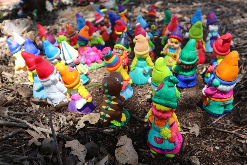 Some dinosaur gnomes sneaked into ornamental display, but on the whole the gnomes are bright, pointy-hatted women and men that will add extra colour to the visitor hot-spot after the battering rain from Makuru.